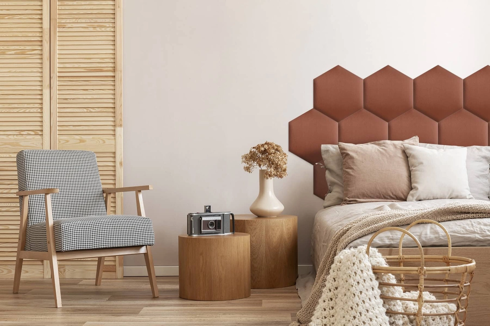 Das gepolsterte Wandpaneel Hexagon ist eine äußerst stilvolle, moderne und dennoch zeitlose Dekoration, die jede Einrichtung in Ihrem Haus ergänzt. Dank seiner vielseitigkeit die Wandpaneele eignen sich für verschiedene Arten von Innenräumen, von Schlafzimmern und Wohnzimmern bis hin zu Kinderzimmern und Fluren. Das Vorhandensein von Heksagon-Dekorplatten verleiht jeder Einrichtung Originalität und Funktionalität, unabhängig vom vorherrschenden Stil. Darüber hinaus haben die Wandplatten auch praktische Eigenschaften. Paneele schalldämmung und Isolierung raum.