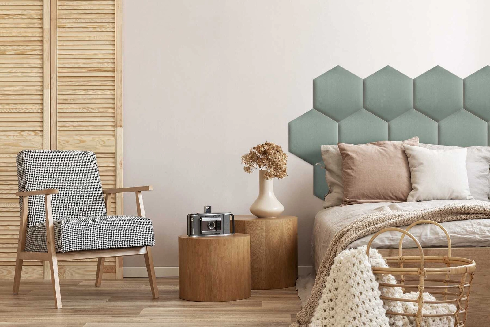 Gepolstertes Paneel Heksagon in Mintgrün ist eine Dekoration, die Liebhabern von modernen Arrangements gefallen wird.