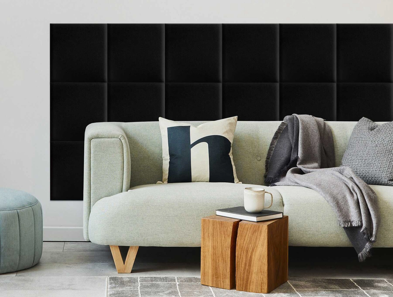 Gepolstertes Paneel Quadra 50x50 cm schwarz stilvolles Wandpaneel quadratischer Veloursstoff modisches Finish für jede Einrichtung