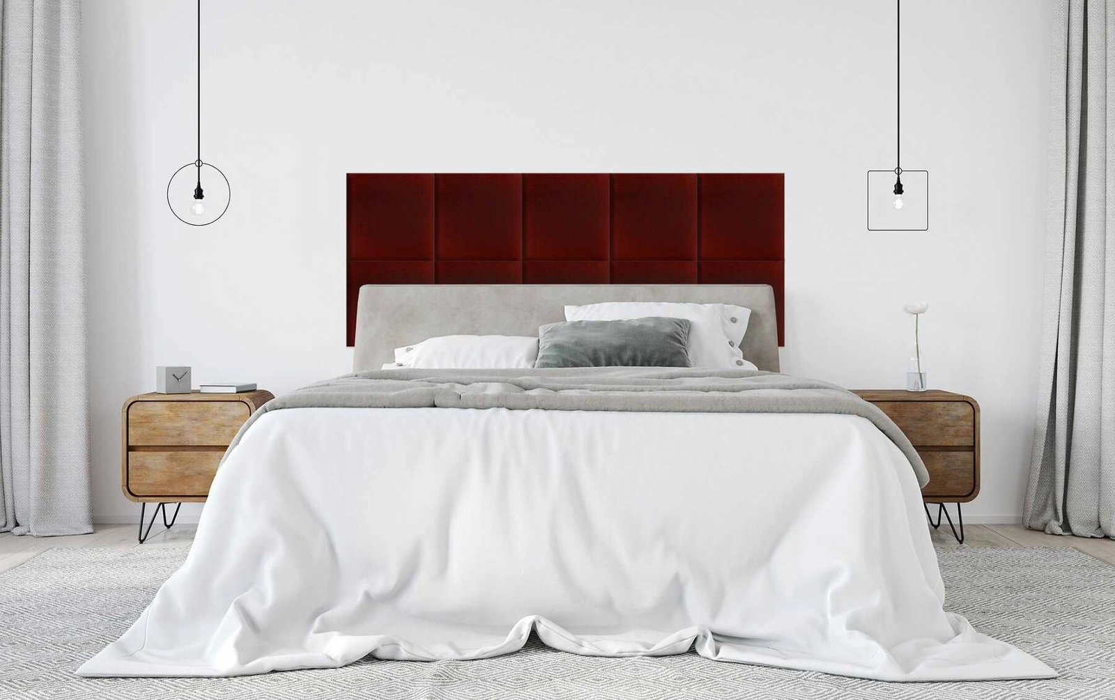 Gepolstertes Paneel 30x30 cm Quadra in Burgunderrot ist eine Dekoration, die die Liebhaber moderner Arrangements begeistern wird.