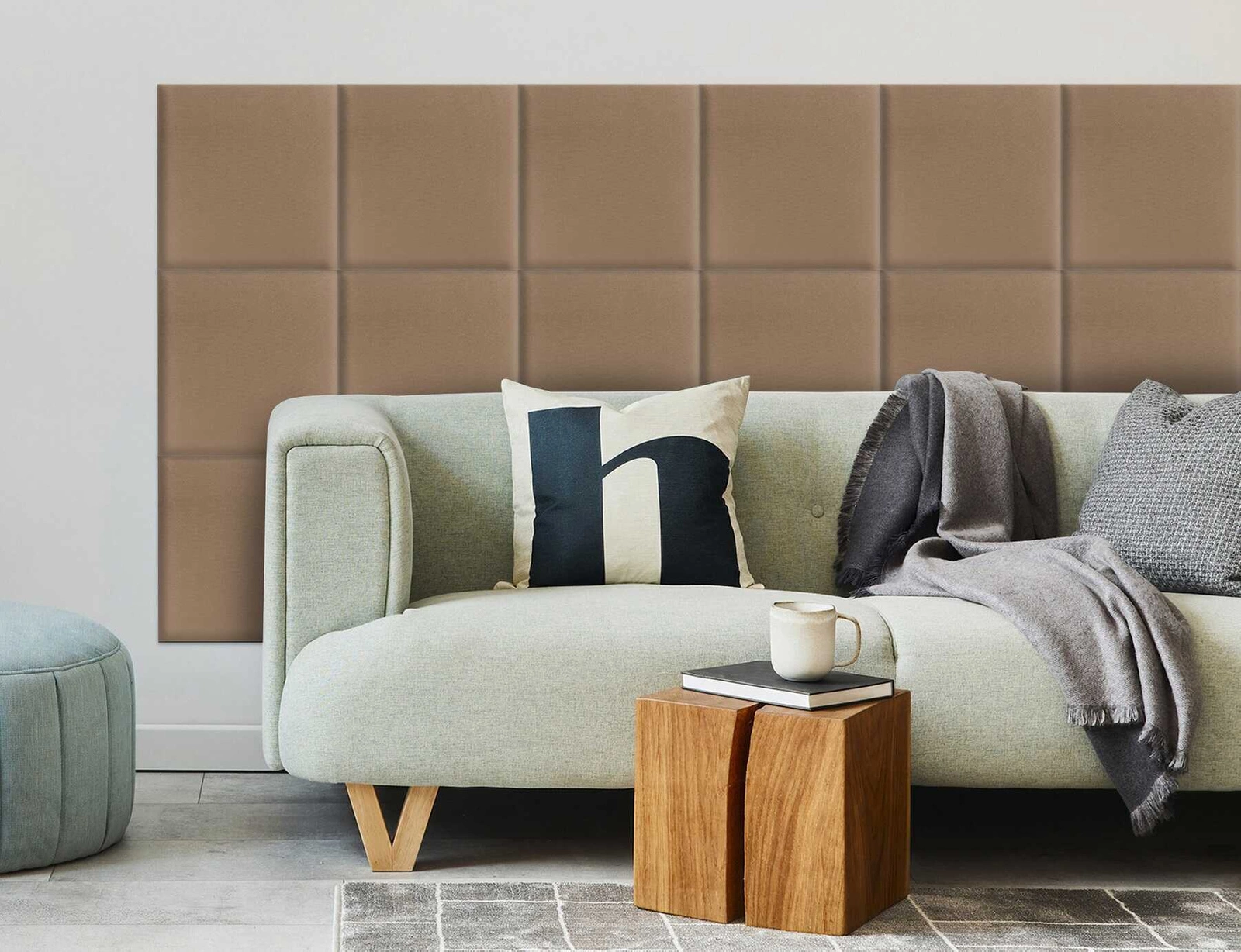 Gepolstertes Paneel Quadra 30x30 cm beige stilvolles Wandpaneel quadratischer Veloursstoff modisches Finish für jede Einrichtung