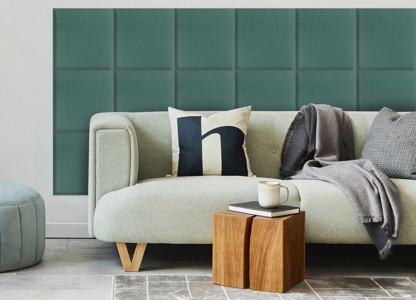 Gepolstertes Paneel Quadra 30x30 cm nautisch stilvolles Wandpaneel quadratischer Veloursstoff modisches Finish für jede Einrichtung