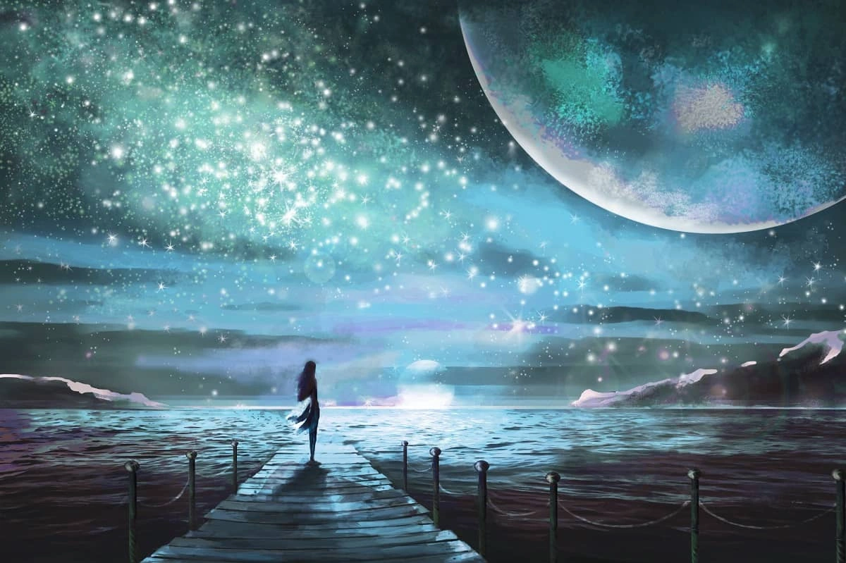 Gemälde auf Leinwand 100x70 cm mit Motiv eines Piers und des Meeres im Fantasy-Stil ist eine zeitlose Dekoration, die sowohl Liebhaber moderner als auch klassischer Arrangements begeistern wird.