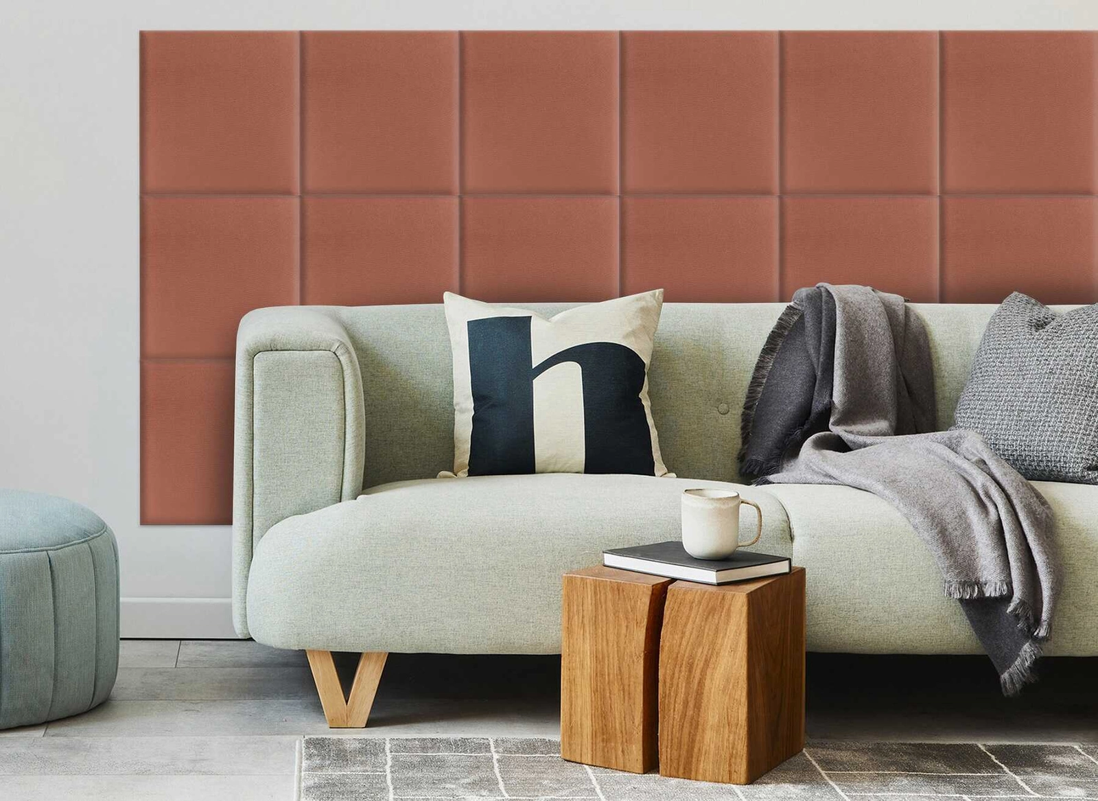 Der Velours-Bezugsstoff zeichnet sich durch seine weiche und fühlbare Oberfläche aus. Das Material zeichnet sich aus durch hohe Abriebfestigkeit. Der Stoff ist uV-beständig, und ist außerdem leicht sauber zu halten. Auf diese Weise bleibt das Wandpaneel lange Zeit ästhetisch ansprechend und elegant.