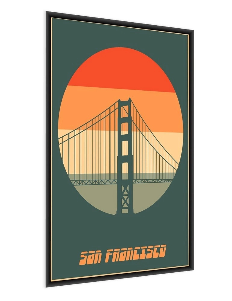 70x100 gerahmtes Poster mit Motiv der Golden Gate Bridge ist ein Vorschlag für eine stilvolle Dekoration, die Liebhaber von modernen Arrangements begeistern wird.