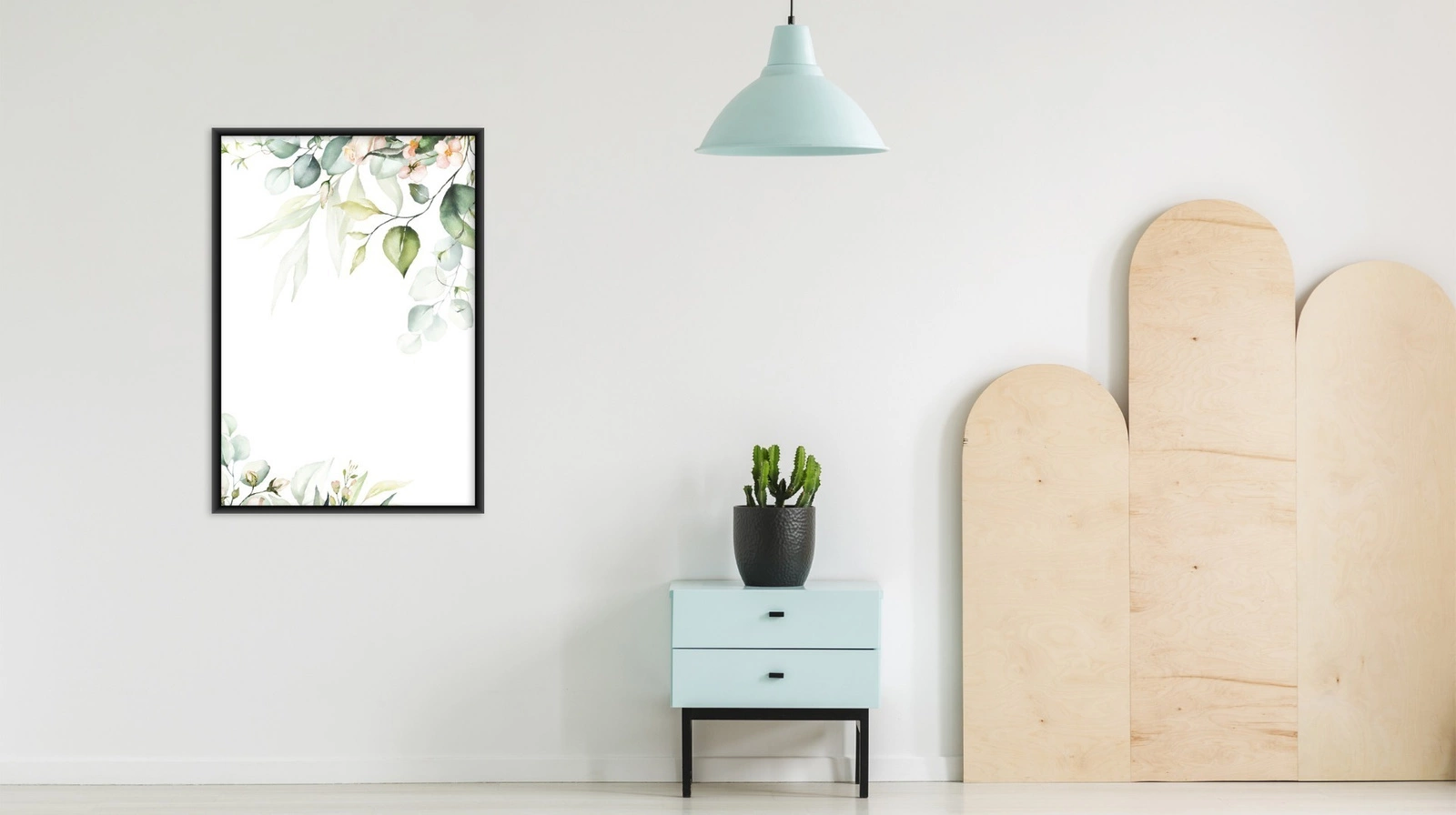 70x100 gerahmtes Poster mit pastellfarbenem Blumenmotiv ist ein Vorschlag für eine stilvolle Dekoration, die Liebhaber von modernen Arrangements begeistern wird.