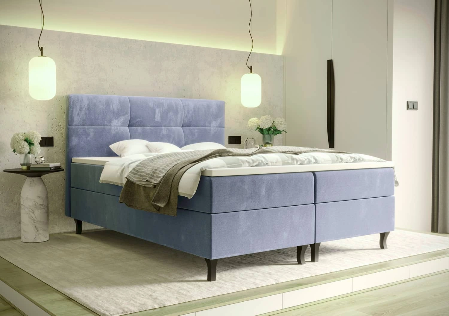 Das Boxspringbett Melba 160x200 in hellblau ist die ideale Lösung für modern, skandinavisch und klassisch eingerichtete Schlafzimmer.