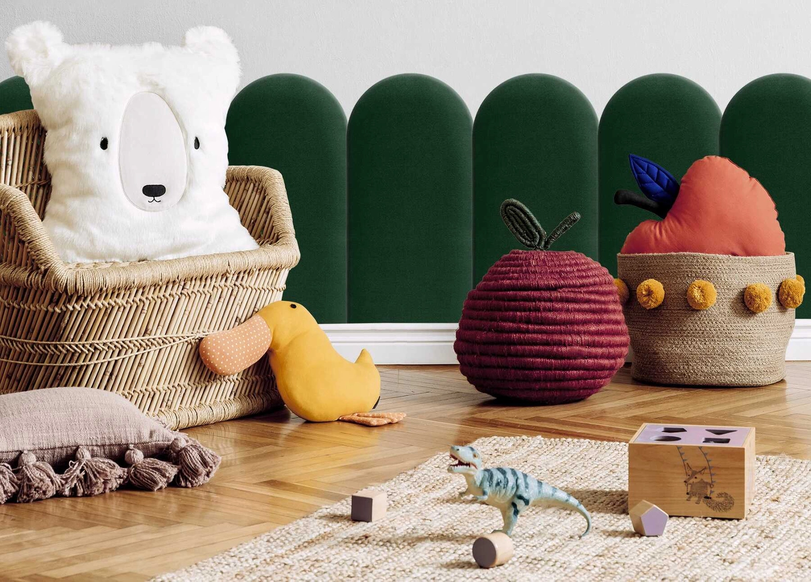 Wally gepolstertes Paneel 30x100 cm Flasche grün stilvolles Wandpaneel Zaun Veloursstoff modisches Finish für jede Einrichtung