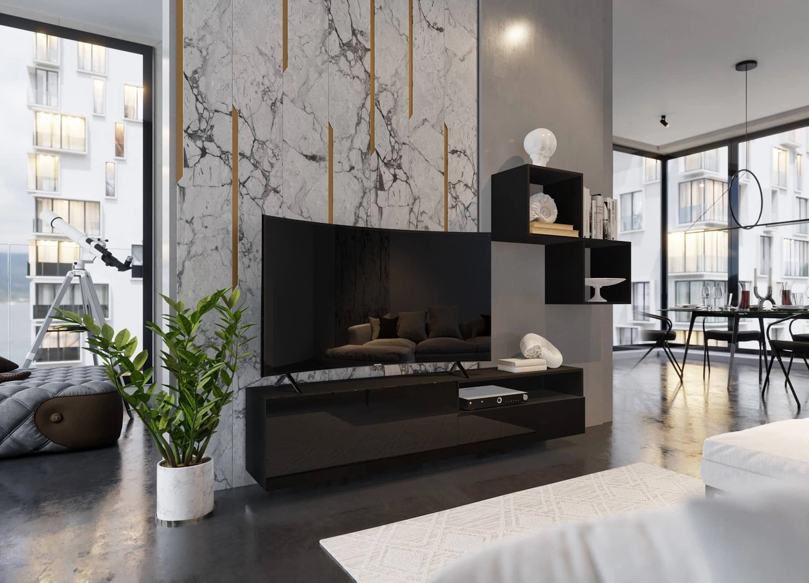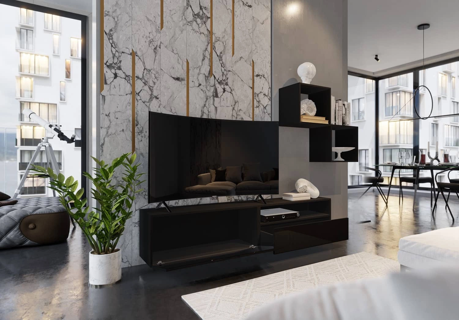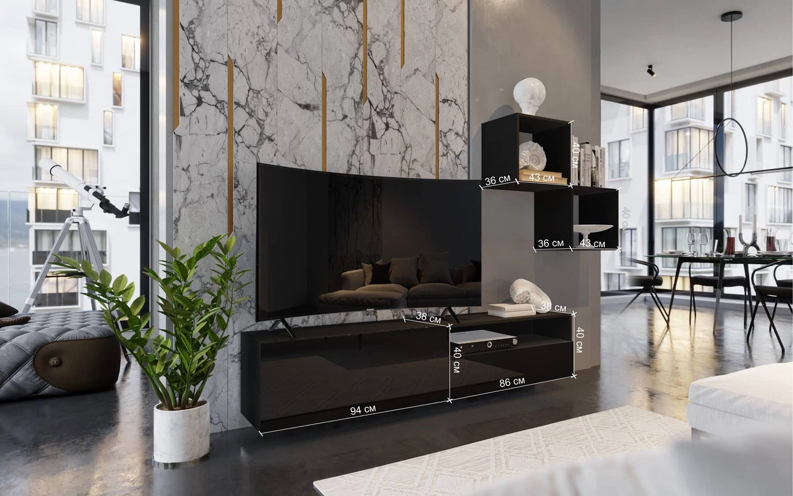 Die Mesini Wohnwand in Schwarz ist ein modernes Möbelstück, das Ihre Einrichtung stilvoll vervollständigen wird.