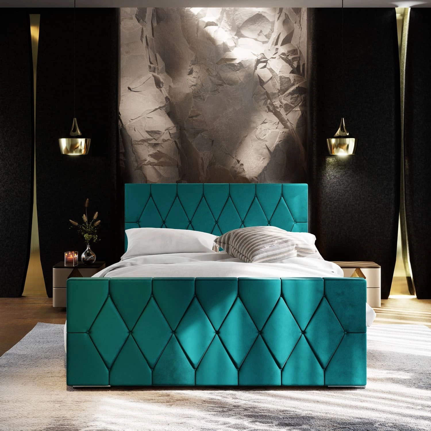 Polsterbett Sparks 160x200 türkis mit Stauraum in einem modernen Stil mit einem markanten Kopf- und Fußteil