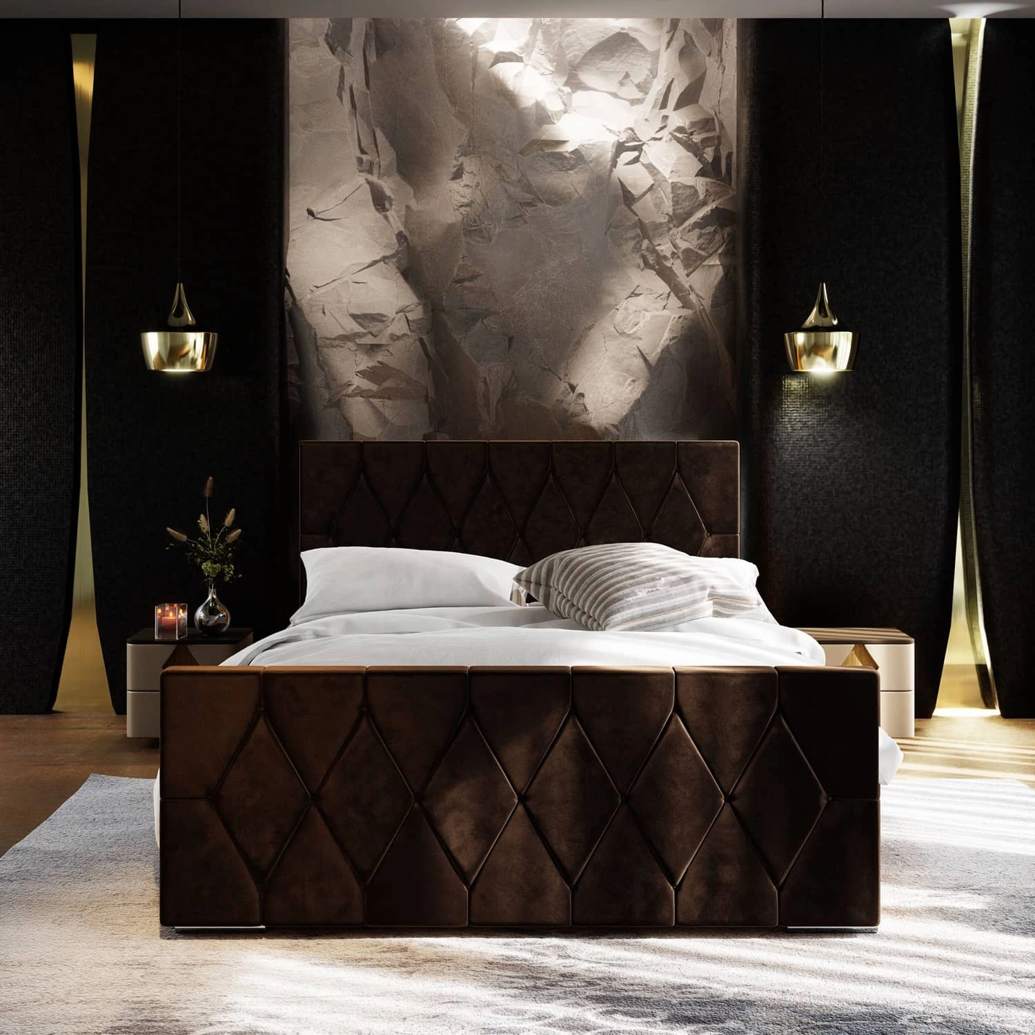 Polsterbett Sparks 180x200 braun mit Stauraum im modernen Stil mit markantem Kopf- und Fußteil