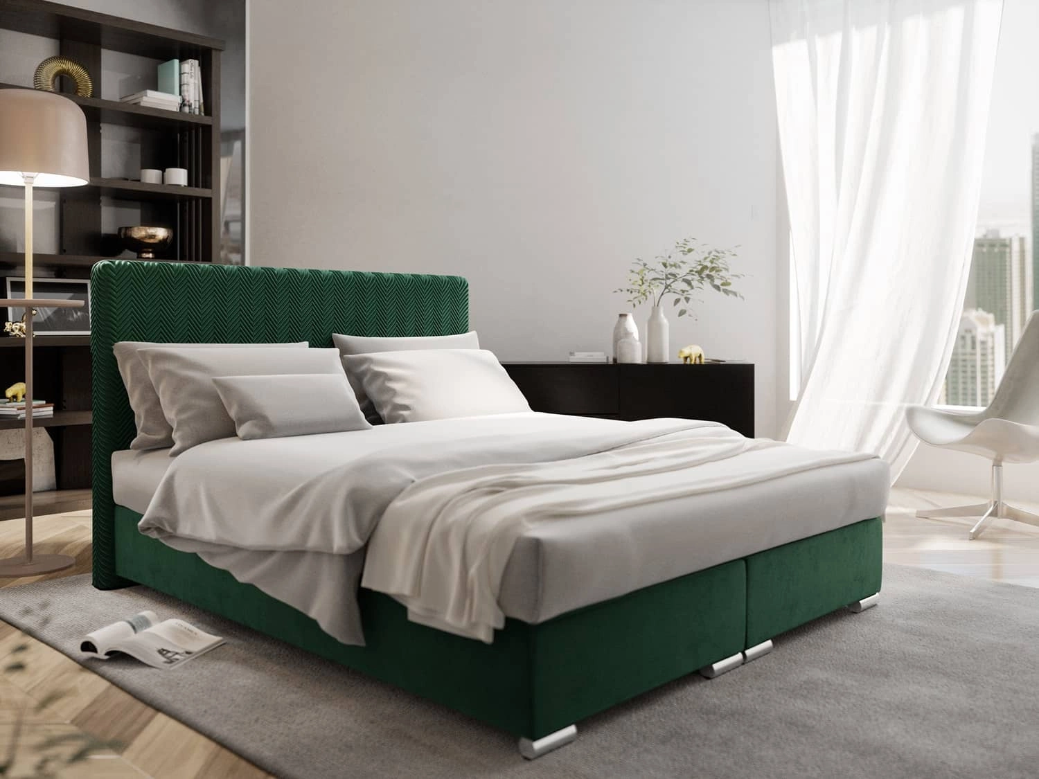 Boxspringbett Sarona 140x200 flaschegrün im modernen skandinavischen Stil mit markantem Kopfteil