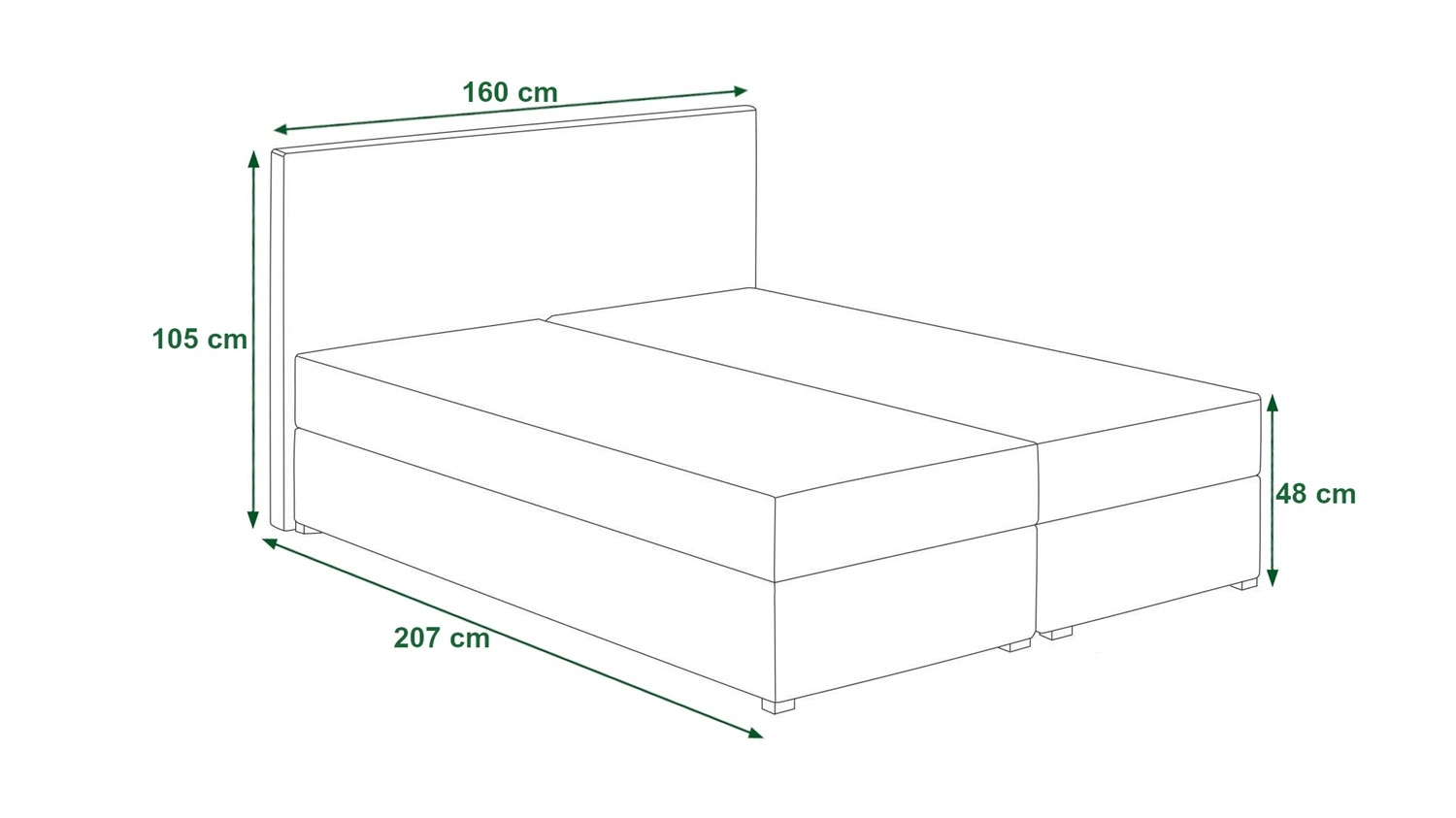 Das Bett aus dem Stoff Riviera 38 garantiert höchsten Komfort und Funktionalität bei der täglichen Entspannung im Schlafzimmer. Der Stoff ist sehr weich und angenehm anzufassen. Das verwendete Gewebe ist sehr abrieb- und reibungsfest sowie lichtecht. Dank der Eigenschaften des verwendeten Stoffes behält das kontinentale Bett lange Zeit sein ursprüngliches Aussehen. Das Design des Bettes bietet große Stabilität und Komfort bei der Benutzung. Der Rahmen des kontinentalen Bettes ist aus Holz und einer Möbelplatte gefertigt. Pzurrgurte am Kopfteil sind ein Blickfang und verleihen dem Bett einen besonderen Charakter.
