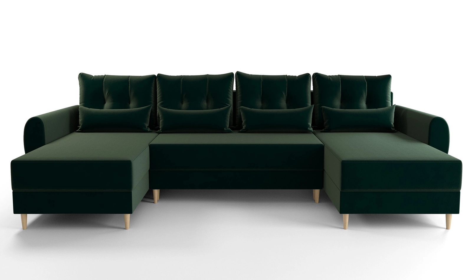 Ecksofa mit Schlaffunktion Rovigo U Flasche grün elegantes und bequemes Ecksofa in skandinavischer Form großes Bettzeugfach