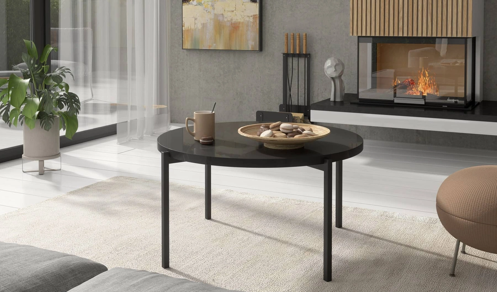 Der runde Couchtisch Sampi in Schwarz ist ein stilvolles Möbelstück, sich durch sein zeitloses Design auszeichnet.