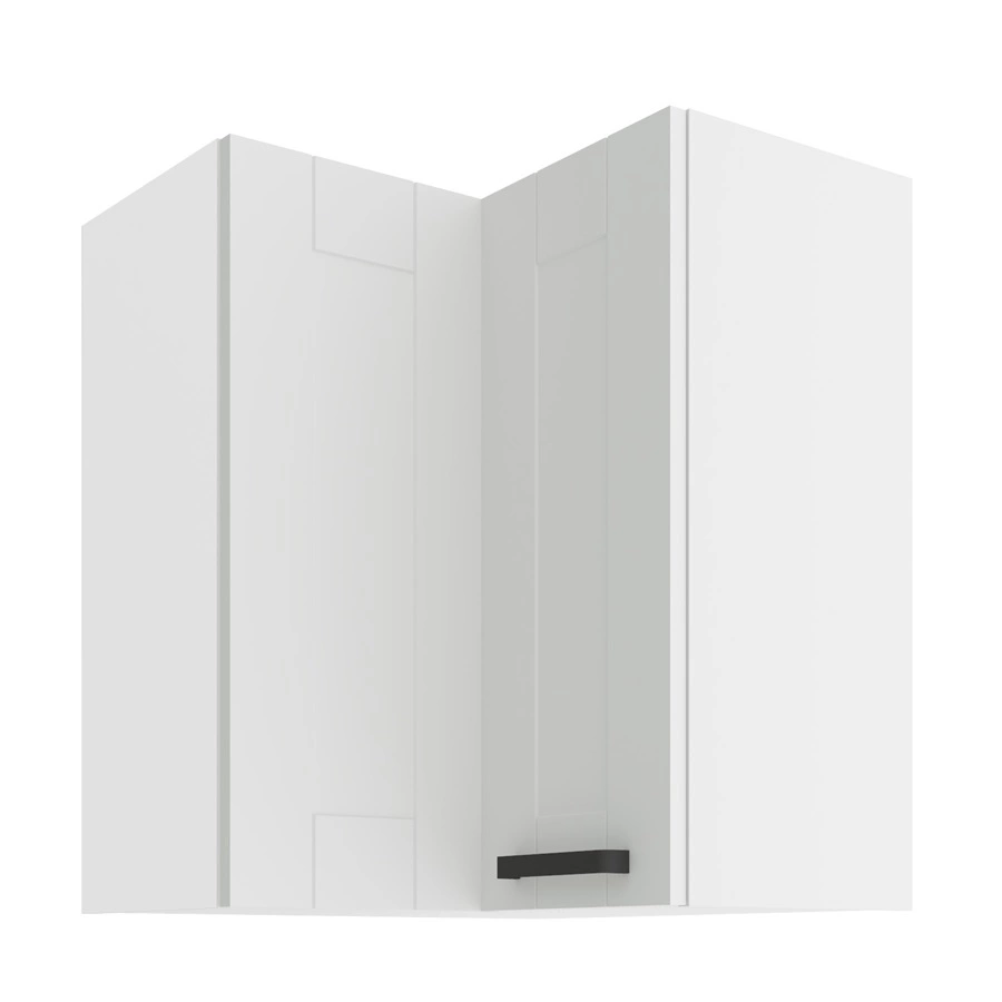 Der Eck-Küchenoberschrank Livio in Weiß gehört zur Kategorie der modularen Küchenmöbel, mit denen sich jede beliebige Einrichtung zusammenstellen lässt.