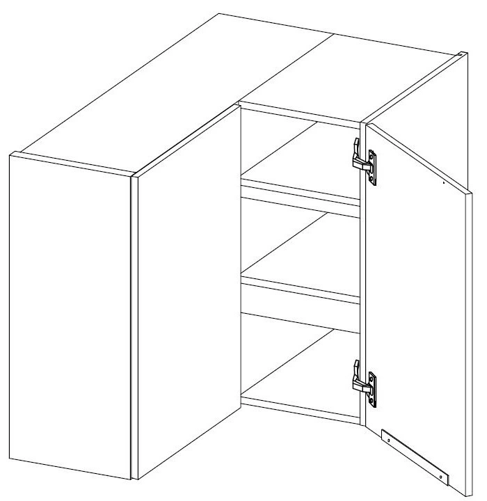Der Küchenoberschrank wird in den Elementen geliefert, die in einem fünfschichtigen Karton verpackt sind. Alle für die Montage erforderlichen Beschläge, d.h. Schrauben, Bolzen, Dübel, Scharniere, Griffe, Dübel, werden zusammen mit den Küchenschrankkomponenten verpackt.