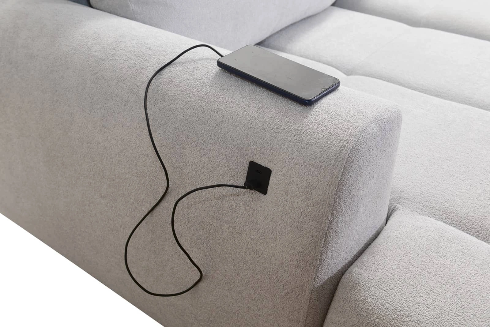 Die Extras dieses Möbelstücks, die alle Nutzer schätzen werden, sind der Bettzeugbehälter und die USB-Ladebuchse an der Seite des Eckmöbels.