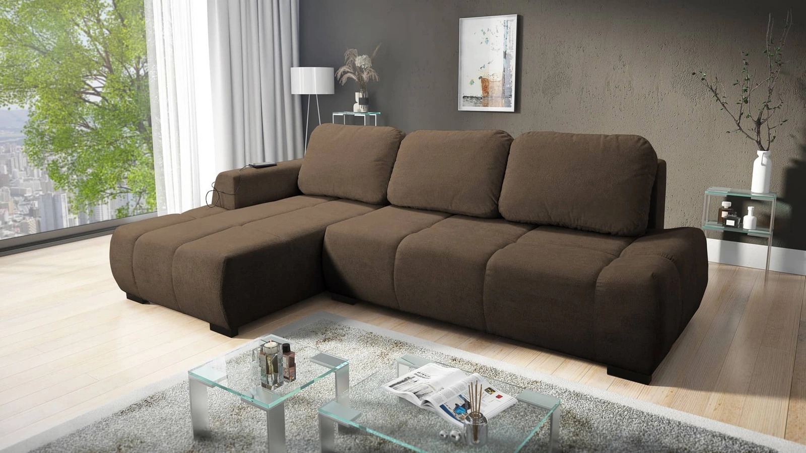 Ecksofa mit Schlaffunktion Gentle brown linke Seite stilvolles Design Ecksofa zeichnet sich durch seine abgerundete Form aus