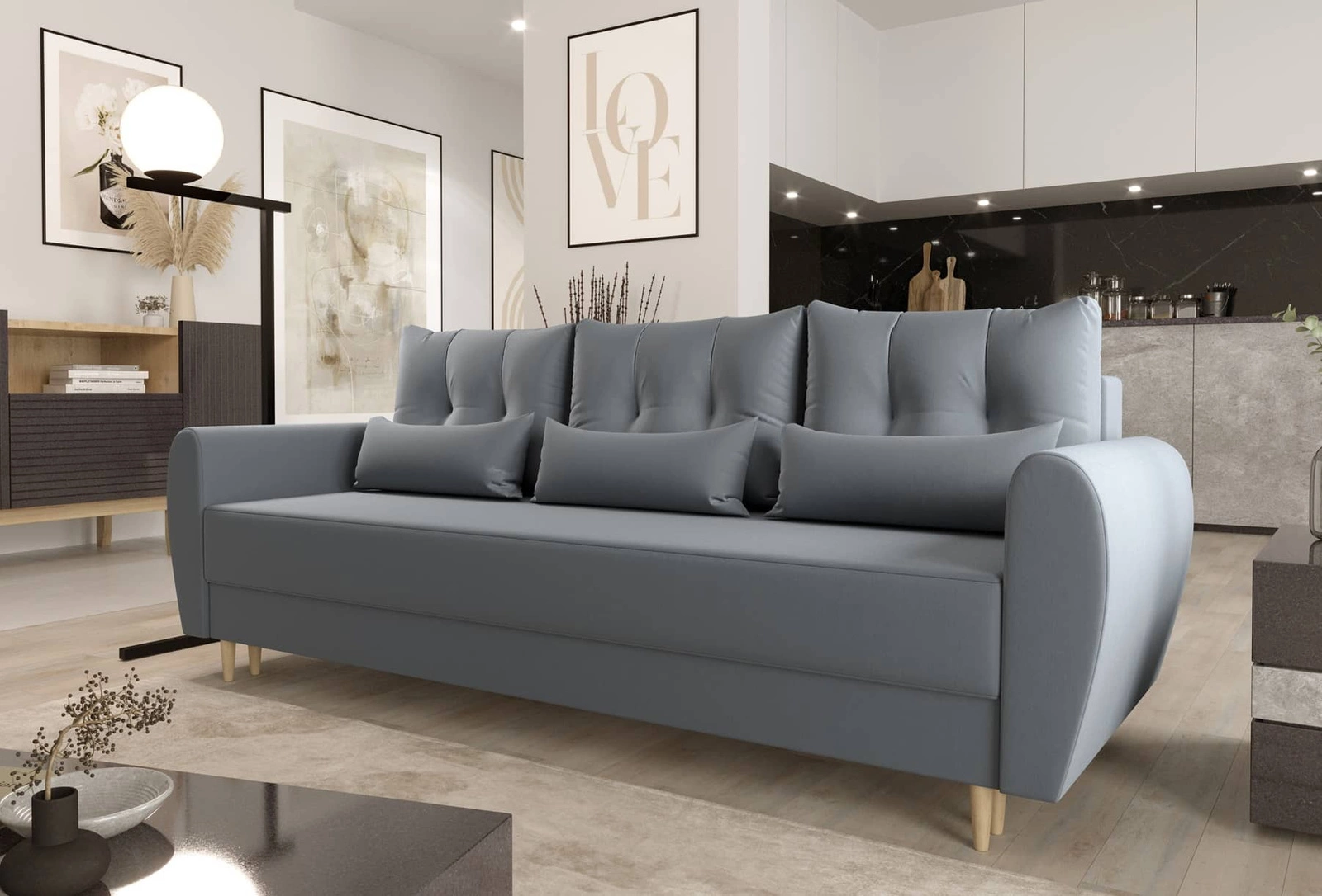 Sofa Rovigo in Graublau ist ein stilvolles Möbelstück, das den Look jedes Interieurs verändern wird.