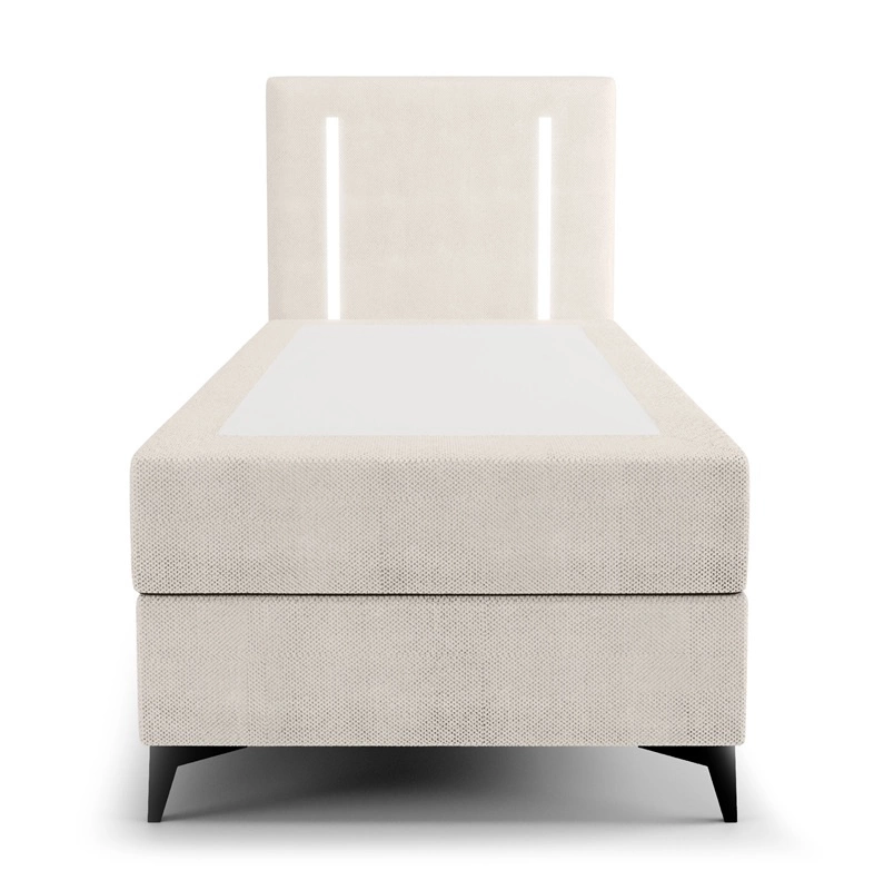 Boxspringbett Norco 90x200 ecru stilvolles Bett mit Bettwäsche Container Beleuchtung im Kopfteil macht es einzigartig