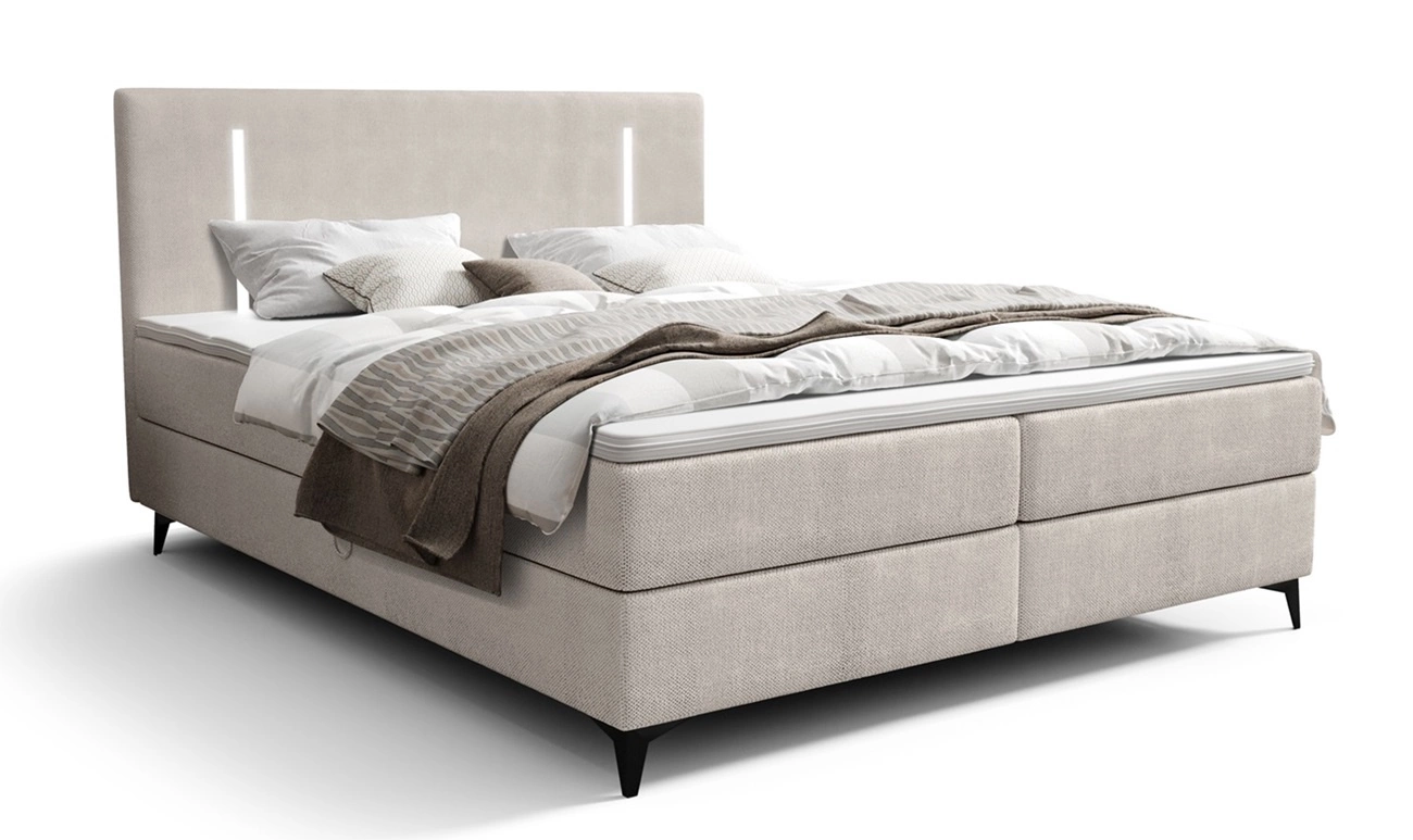 Boxspringbett Norco 180x200 ecru stilvolles Bett mit Bettwäsche Container Beleuchtung im Kopfteil fügt eine einzigartige Note