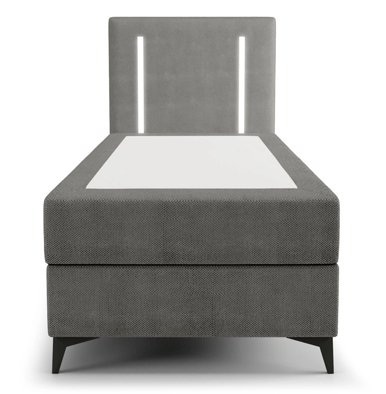 Boxspringbett Norco 80x200 grau stilvolles Bett mit Bettzeug Lagerung Beleuchtung im Kopfteil fügt eine einzigartige Note