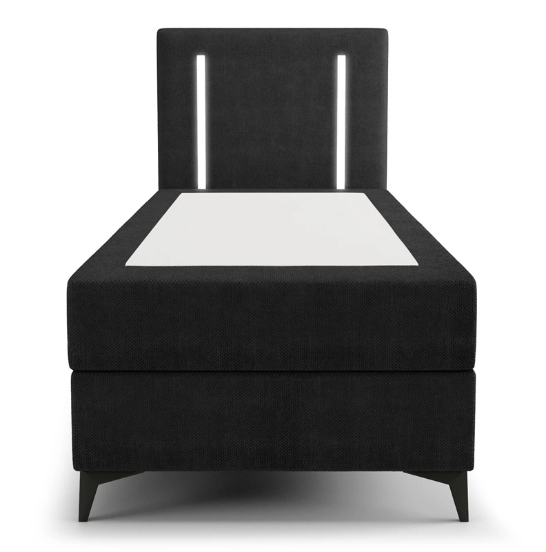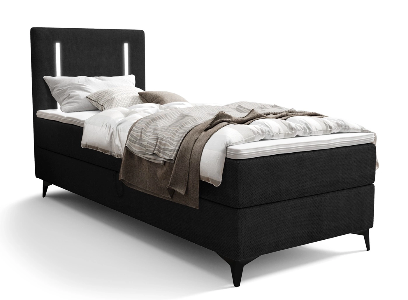 Boxspringbett Norco 80x200 schwarz stilvolles Bett mit Bettzeug Lagerung Beleuchtung im Kopfteil fügt eine einzigartige Note