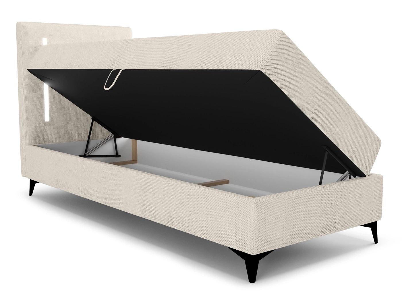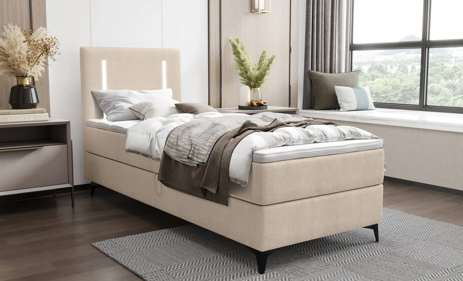 Boxspringbett Norco 90x200 beige stilvolles Bett mit Bettzeug Lagerung Beleuchtung im Kopfteil fügt eine einzigartige Note