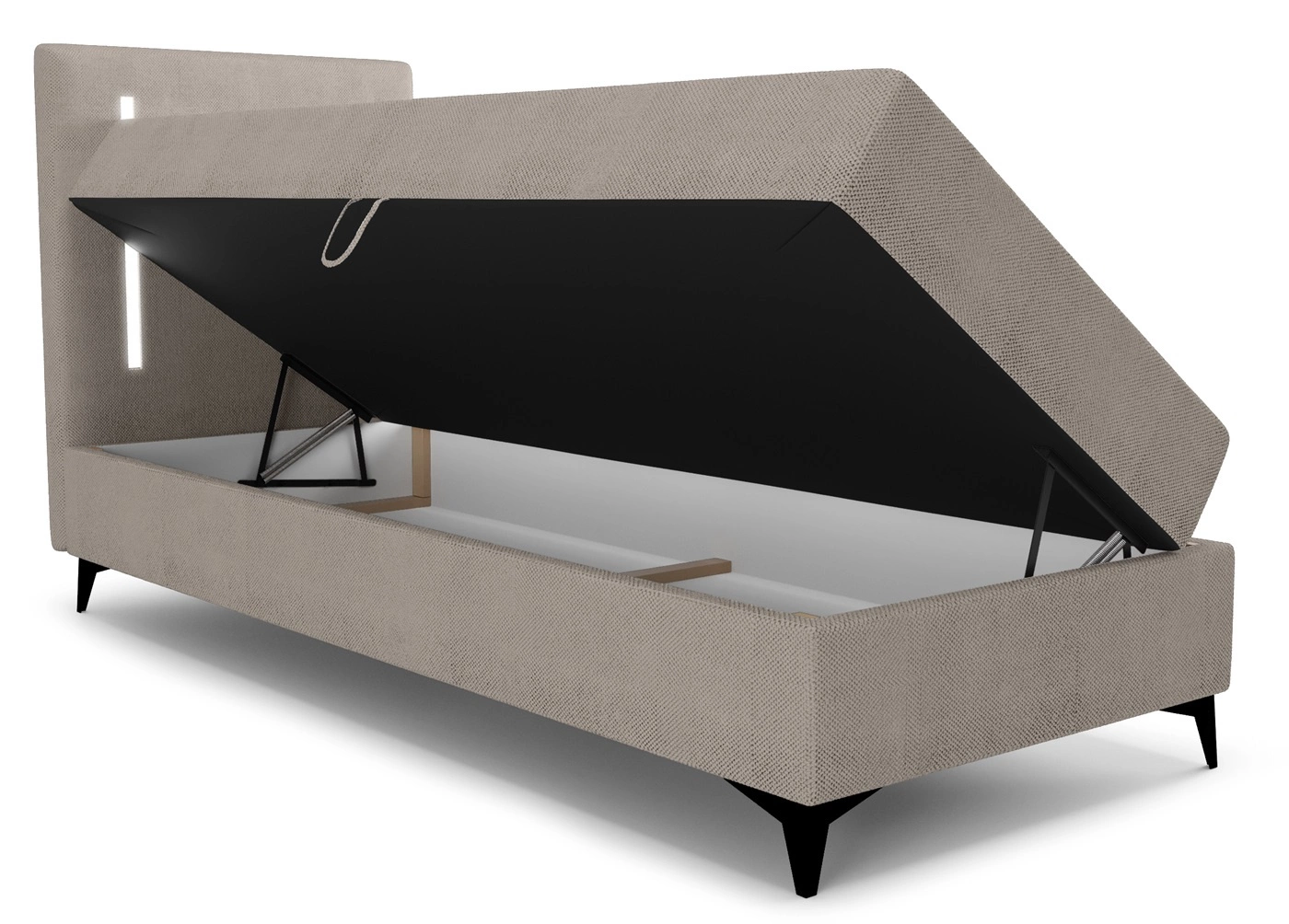 Boxspringbett Norco 90x200 dunkelbeige stilvolles Bett mit Staukasten Beleuchtung im Kopfteil fügt eine einzigartige Note