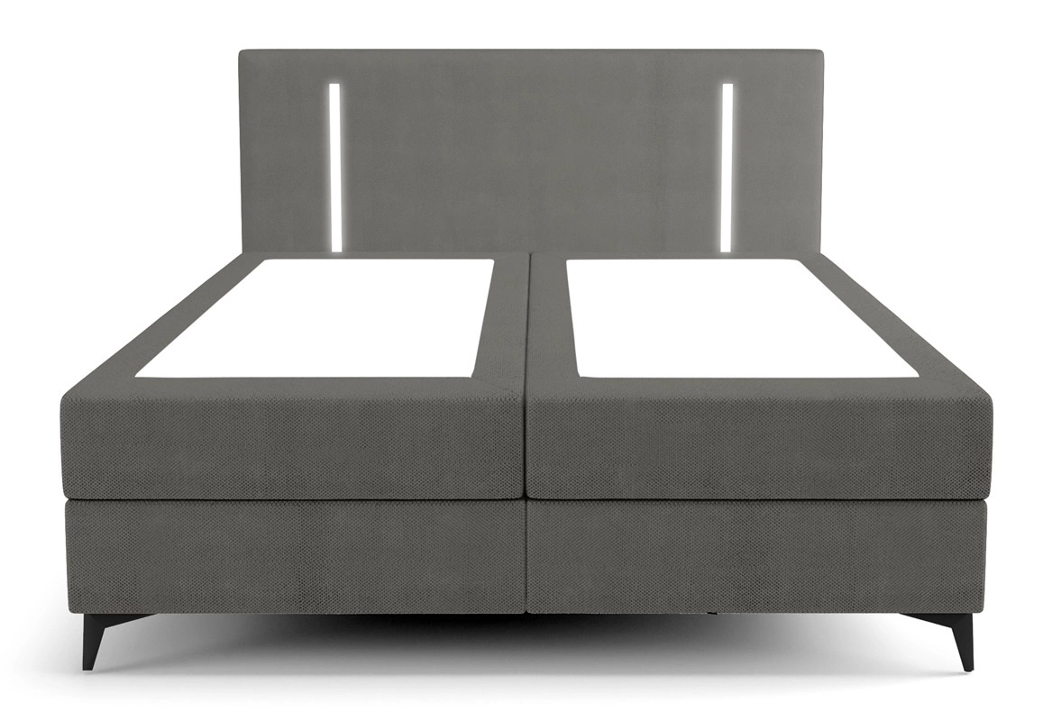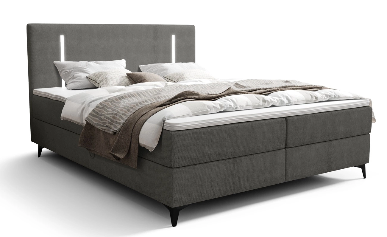 Boxspringbett Norco 140x200 grau stilvolles Bett mit Bettzeug Lagerung Beleuchtung im Kopfteil macht es einzigartig