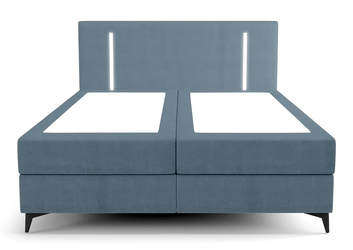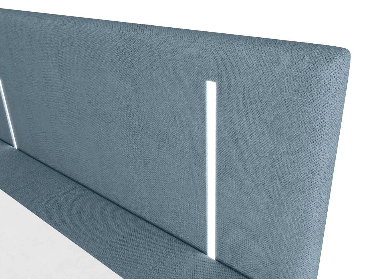 Boxspringbett Norco 180x200 blau stilvolles Bett mit Staukasten Beleuchtung im Kopfteil fügt eine einzigartige Note
