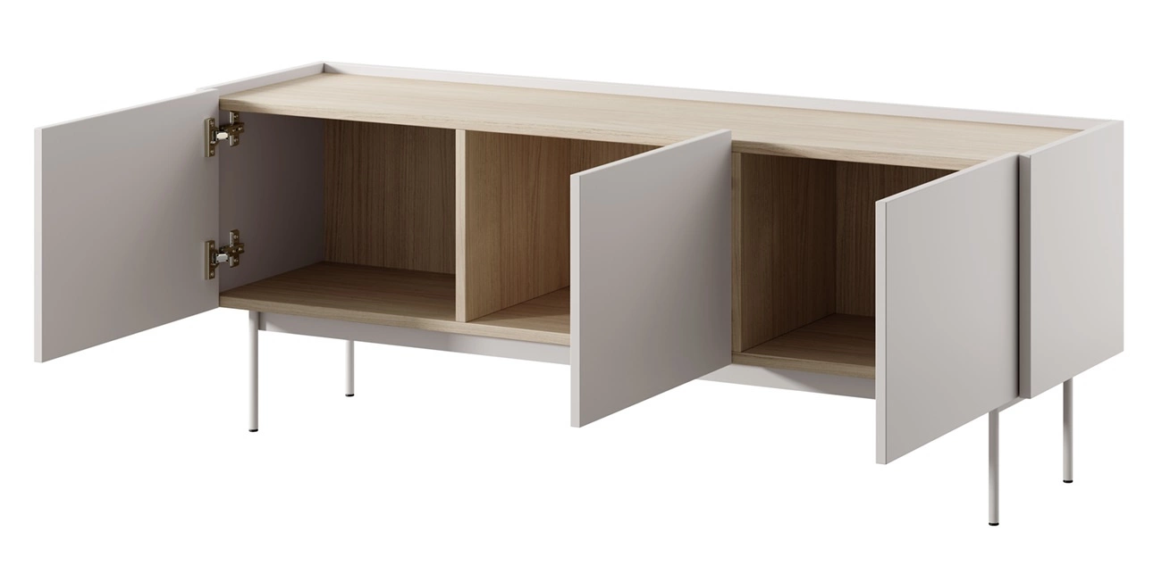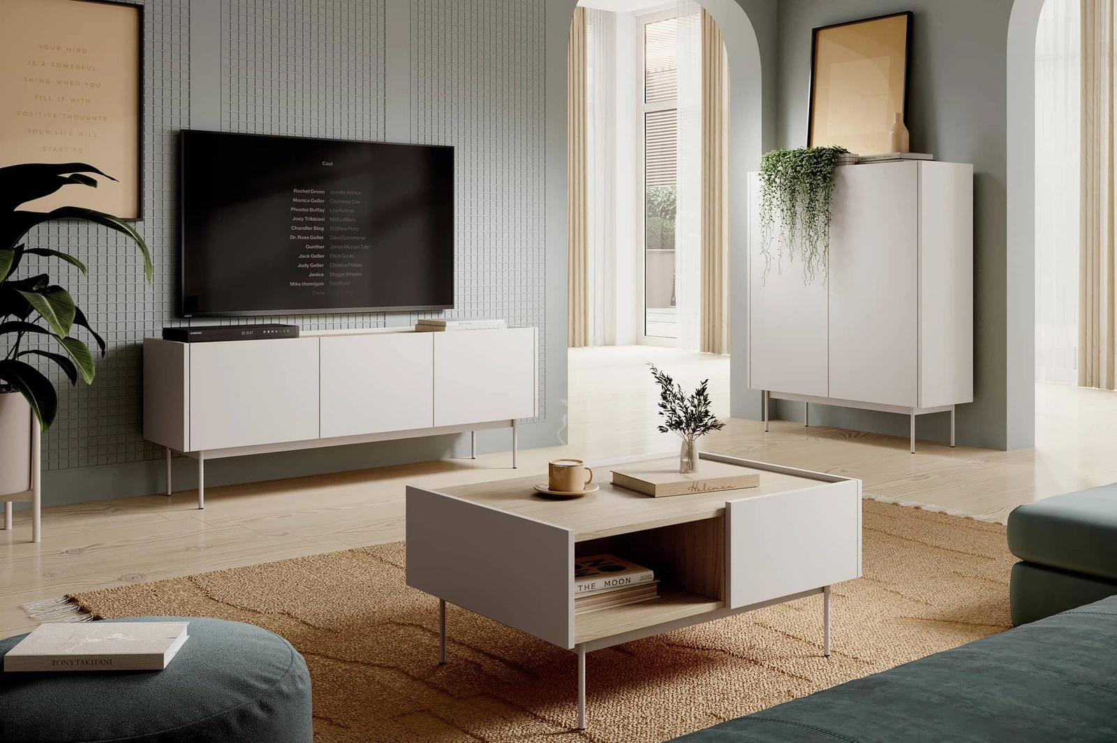 Vellore RTV Schrank in Beige ist ein Möbelvorschlag für Liebhaber minimalistischer Innenräume.