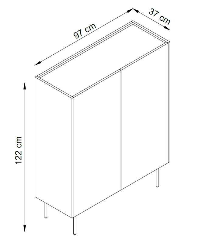 Die Wohnwand ist hergestellt aus hochwertige 16 mm dicke laminierte Platte, die resistent gegen äußere Einflüsse wie Druckstellen, Stöße und unglückliche Kratzer ist. Die Struktur der Möbel wurde mit Metallbeinen verstärkt metallbeine 20 cm hoch, die die Eleganz betonen hängeschränke unter Beibehaltung der Zweckmäßigkeit.