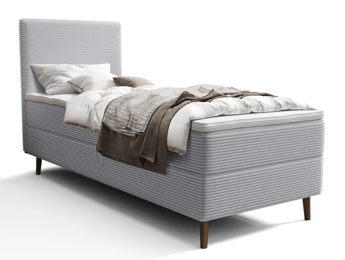 - Das Kontinentalbett Totti ist die perfekte Wahl für ein Jugendzimmer oder ein kleineres Schlafzimmer. Hohe Kopfstütze und Holzbeine garantieren Stabilität und hohen Komfort. Weicher Cordstoff mit knackigen, klobigen Streifen verleiht einen einzigartigen R