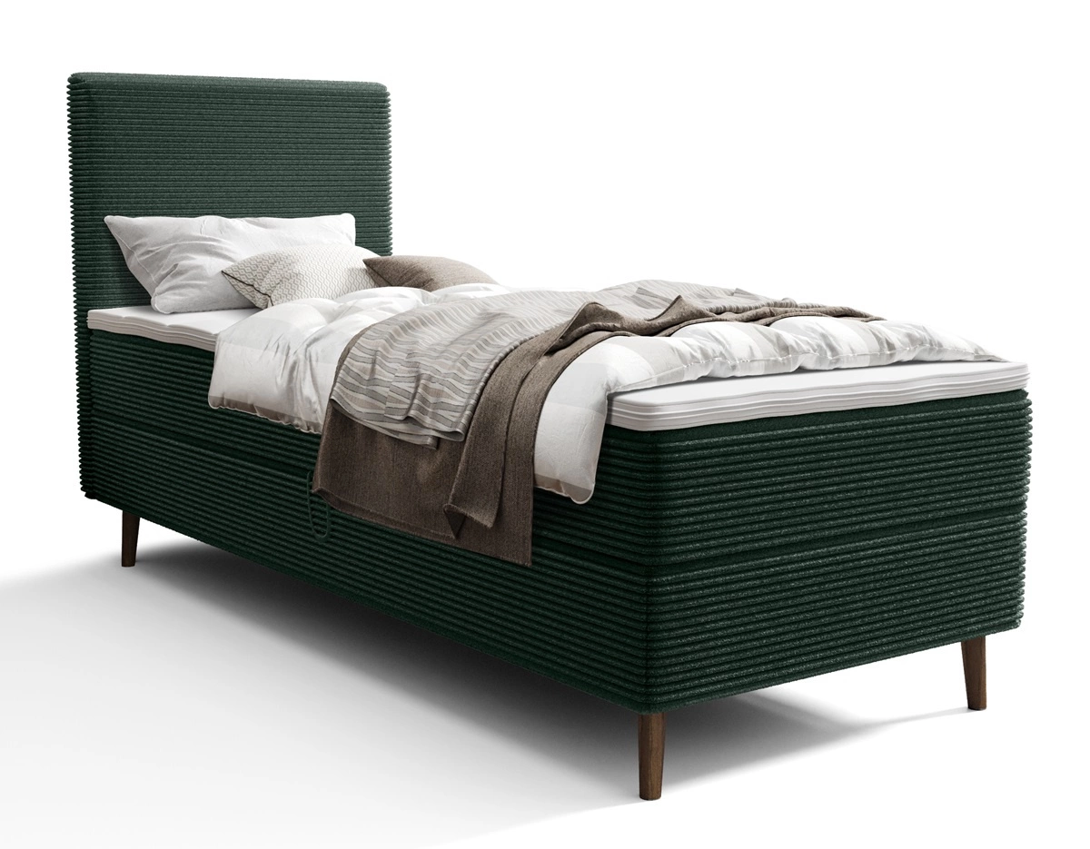 Boxspringbett Totti 90x200 grün stilvolles Bett mit Bettzeug Lagerung dreidimensionalen Stoff mit ausdrucksstarken Streifen
