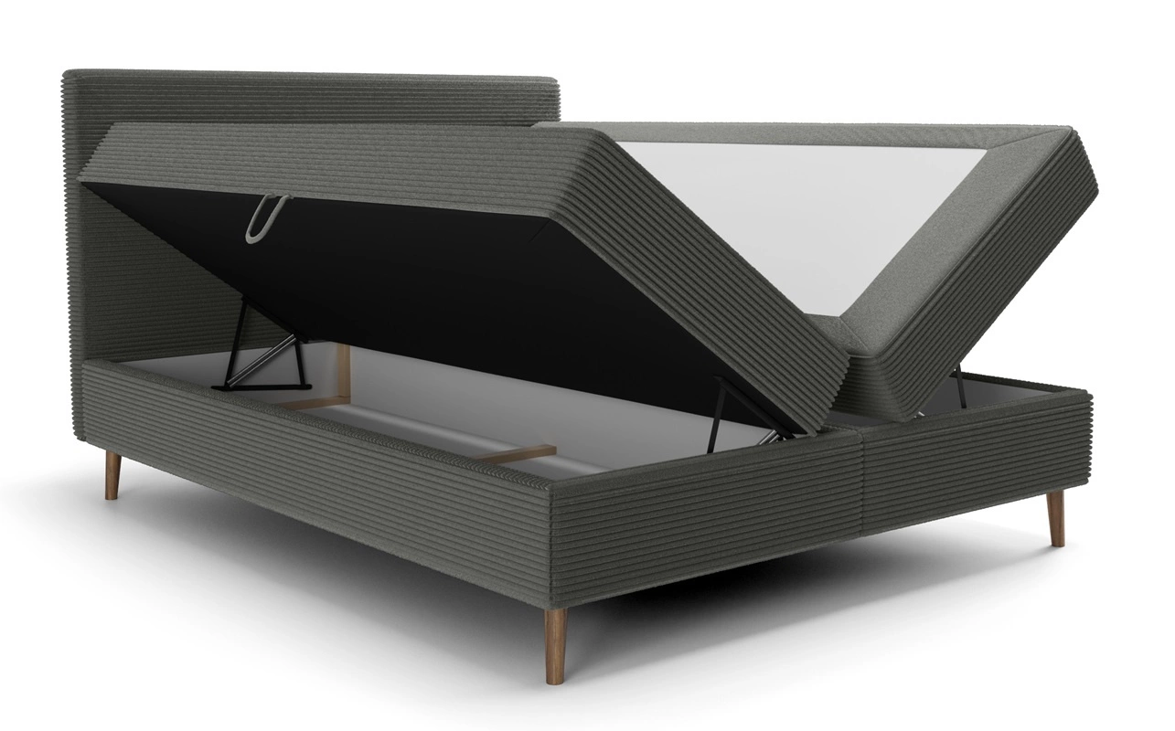 Das kontinentale Bett Totti ist eine Kombination aus Funktionalität und modernem Design, die jedes Schlafzimmer mit Eleganz und Stil bereichert. Hohe Kopfstütze aus weichem Kordstoff schmückt nicht nur den Innenraum, sondern dient auch als bequeme Unterlage beim Lesen eines Buches, Fernsehen oder Arbeiten am Laptop. Das Design des Schlafzimmerbettes wird durch schlanke, holz beine, die den skandinavischen Charakter von Bett und Matratze unterstreichen und die Stabilität des Möbels garantieren. Die stilvollen kontinentalen Betten aus der Totti-Kollektion schaffen einen äußerst komfortablen Raum für die tägliche Entspannung.