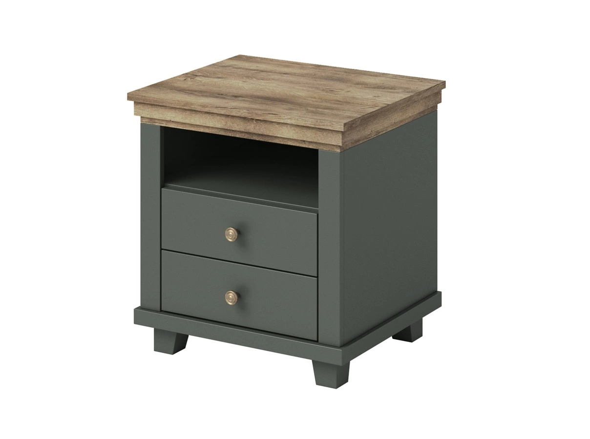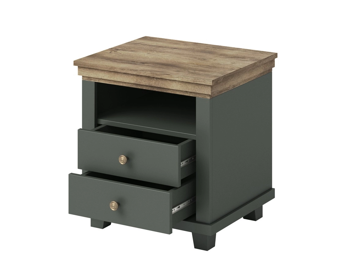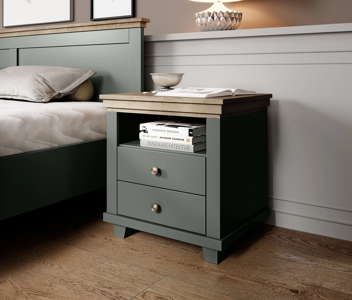 Evora Nachttisch Flasche grün / Eiche lefkas mit Schubladen ideale Schrank für Schlafzimmer in klassischen und skandinavischen Stil