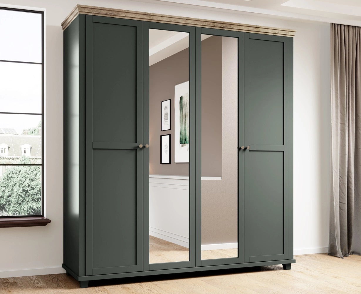 Spiegelschrank Evora 200 cm Flasche grün / Eiche lefkas elegantes Design geschmackvolle Farben Kleiderschrank für Schlafzimmer oder Ankleidezimmer
