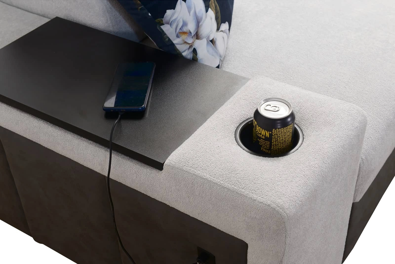 Die USB-Ladesteckdose, der Öffnungsbügel in der Ecke und die Getränkehalter sind Ergänzungen dieses Möbels, die alle Benutzer schätzen werden.