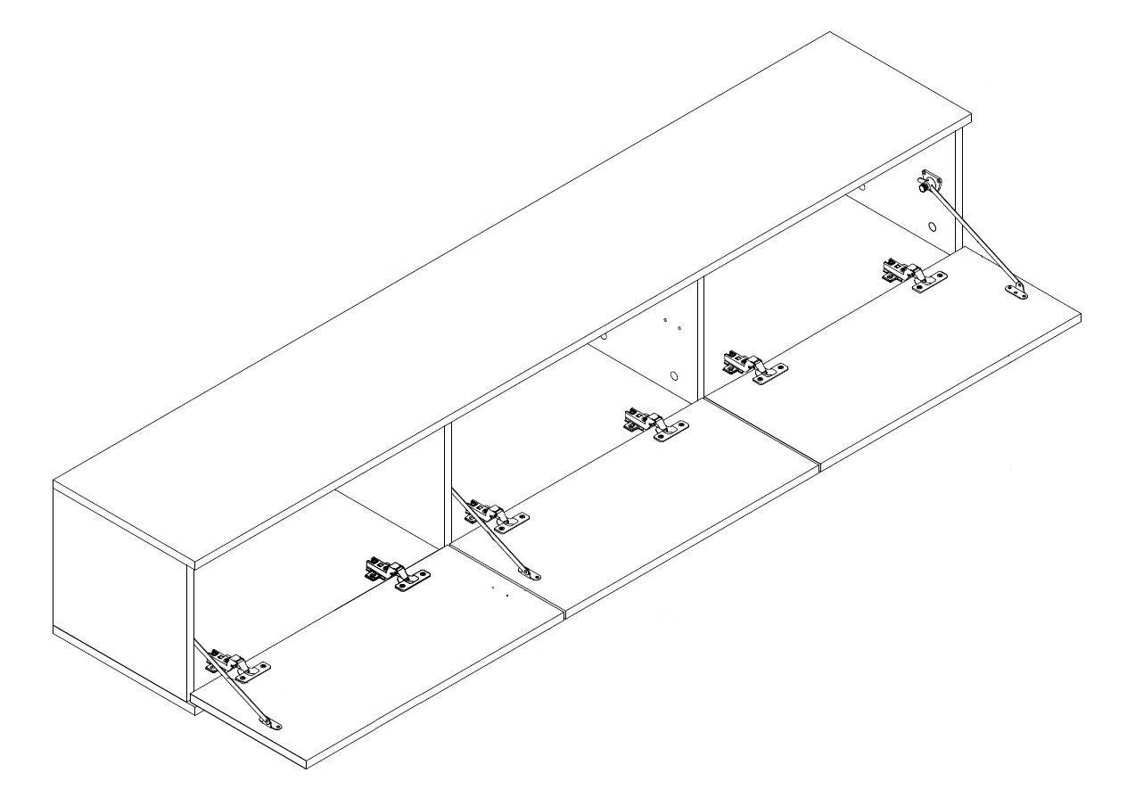 Der RTV-Schrank ist mit 3 nach unten öffnenden Türen ausgestattet.
