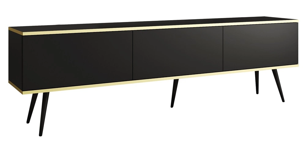 TV-Schrank Luxury 175 cm schwarz elegantes Design Schrank mit goldener Zierleiste Schrank auf schwarzen Metallbeinen
