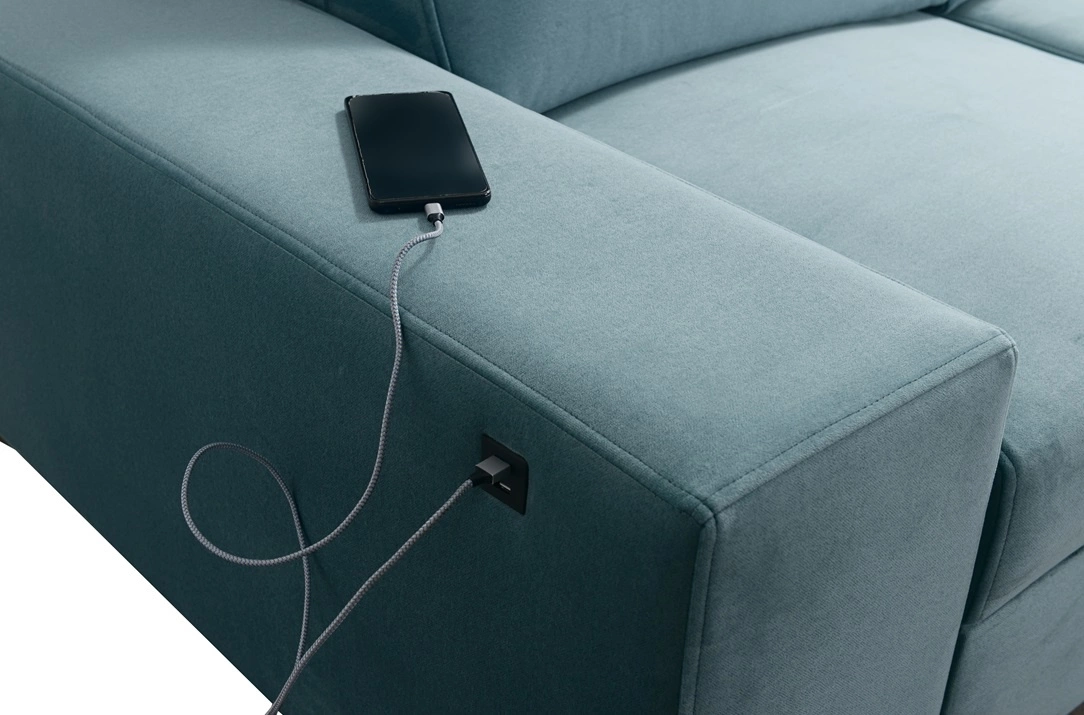Die Extras dieses Möbels, die alle Benutzer schätzen werden, sind die Schlaffunktion und die USB-Ladebuchse an der Seite des Sofas.