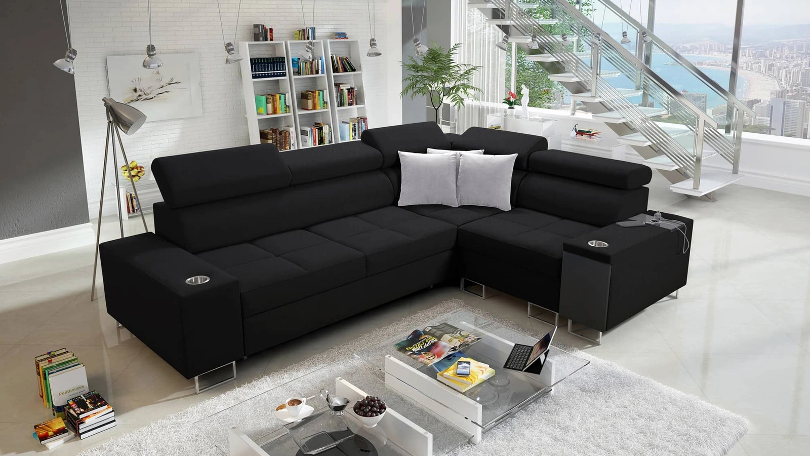 Ecksofa Dafni II in Schwarz mit verstellbaren Kopfstützen ist ein Rezept für ein modernes Interieur in Ihrem Zuhause!