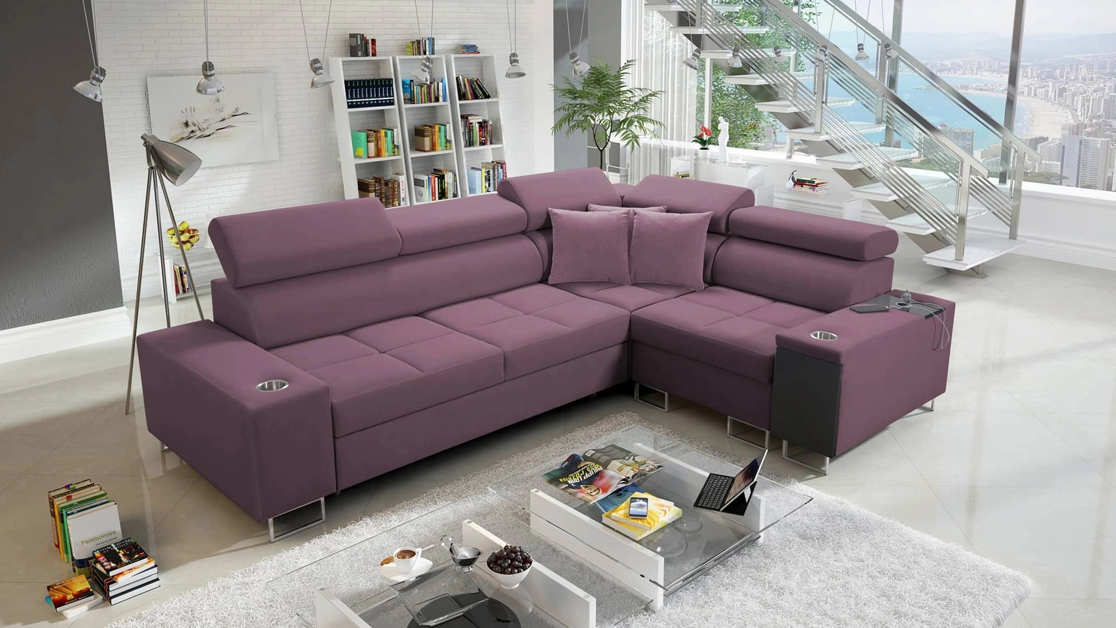 Ecksofa Dafni II in heather mit verstellbaren Kopfstützen ist ein Rezept für ein modernes Interieur in Ihrem Zuhause!