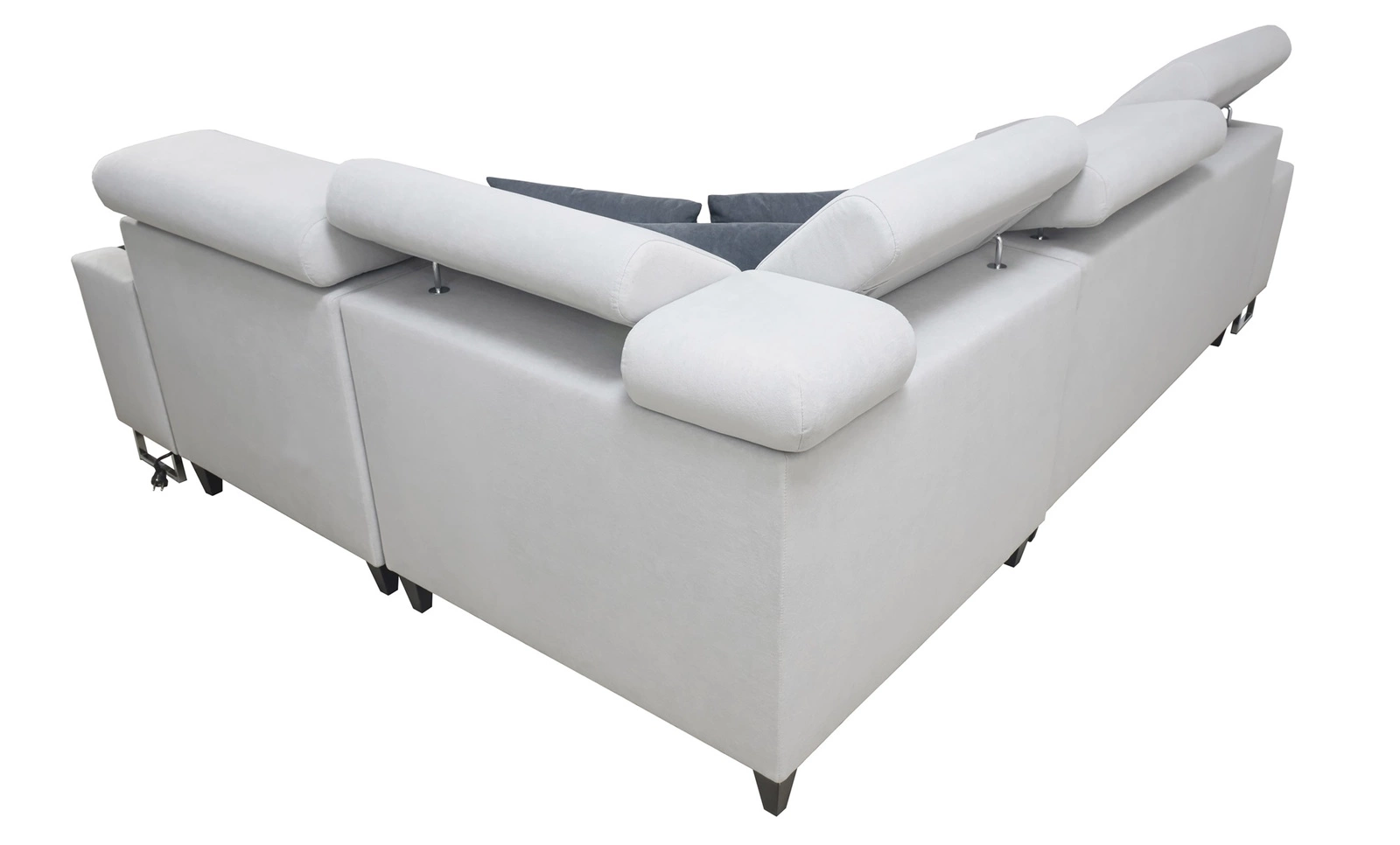 Die Abmessungen der Möbel sind optimal. Breite der Ecke 283 cm, maximale Höhe 100 cm und Tiefe 207 cm. Die Liegefläche der Eckeinheit beträgt 127x210 cm. Die Sitzhöhe des Möbels beträgt 45 cm und die maximale Höhe der Rückenlehne beträgt 60 cm. Gewellte Federn und T30-Polyurethanschaum ist das Material, aus dem der Sitz der Ecke hergestellt ist. Feste Rückenlehne mit verstellbaren Kopfstützen garantiert komfortable Entspannung nach einem langen Tag, die Sie, Ihre Lieben und auch Gäste, die auf diesem einzigartigen Ecksofa Platz nehmen, zu schätzen wissen werden!