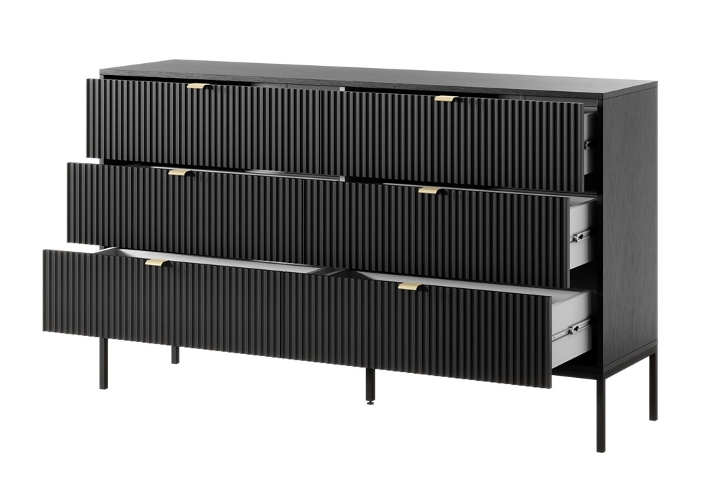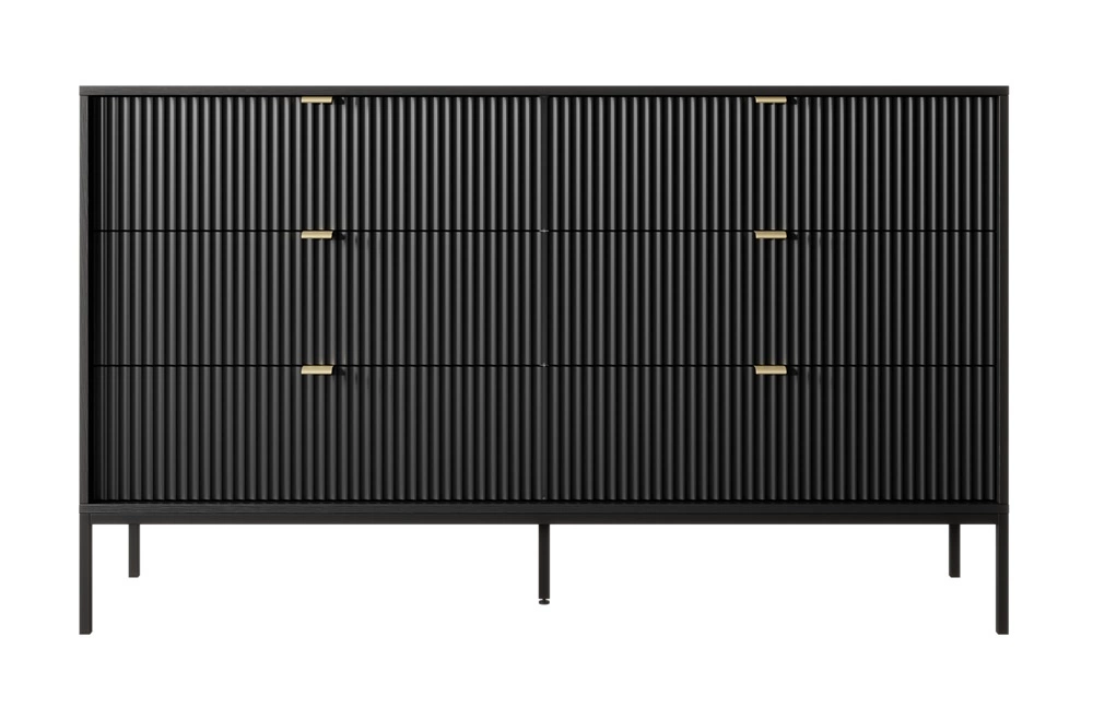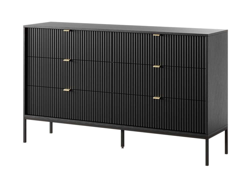 Kommode mit Schubladen Lovro 154 cm schwarz modernes Design wird Liebhaber von ausdrucksstarken Interieurs geriffelte Fronten Metallgriffe begeistern