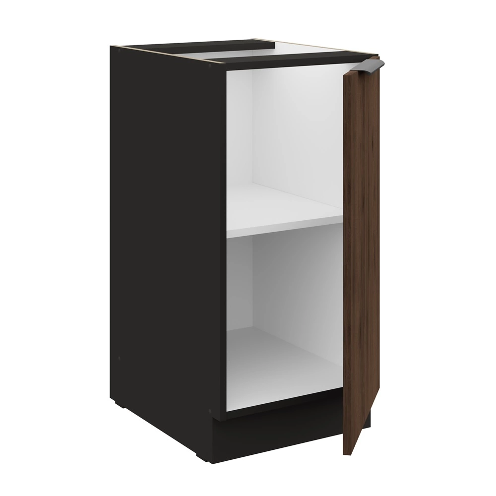 Dank ihrer universellen Positionierung passen die Küchenmöbel in das Innere einer jeden Küche. Schwarze Körper aufgebrochen mit Fronten in Nussbaum und Beige betonen die Eleganz von Küchenschränken. Eine stilvolle Ergänzung zu den Küchenschrankfronten ist die schwarz, metallkantenhalterungen, die zusätzlich zu ihrer Hauptfunktion den Möbeln eine besondere Note verleihen.