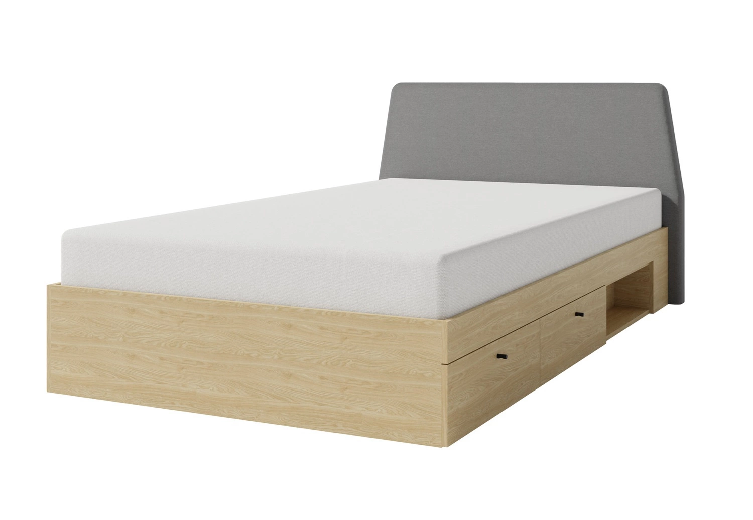 Bett mit Schubladen Olivio 120x200 cm Eiche geölt ideal für ein Kinderzimmer mit gepolstertem Kopfteil und Schubladen