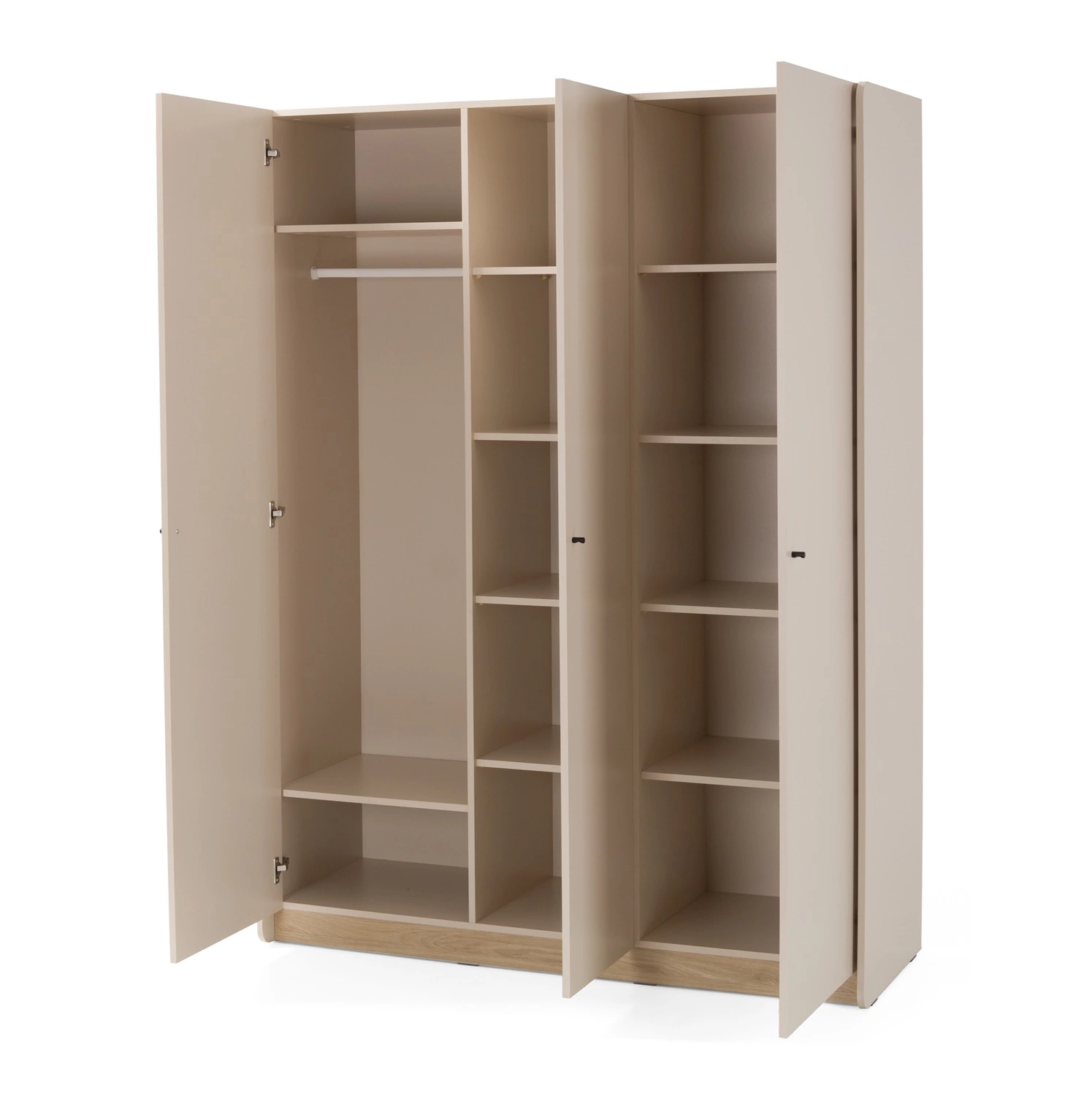 Breite 145 cm, höhe 195 cm und Tiefe 52 cm die Garderobe passt in jede Art von Raum! Die Olivio-Garderobe garantiert komfortablen und problemlosen Gebrauch und Langlebigkeit des gesamten Möbelstücks für viele Jahre der Nutzung. Gedämpfte, helle Farben mischt sich gut mit anderen Farben, aufgrund derer ein Kleiderschrank wird erfolgreich eingesetzt als schlafzimmergarderobe, Flurgarderobe oder Garderobe für das Kinderzimmer kinderzimmer. Dreitürige Kleiderschränke Olivio wird sein auch eine gute Wahl für das Zimmer baby. Er eignet sich auch perfekt als Garderobe für den Flur.